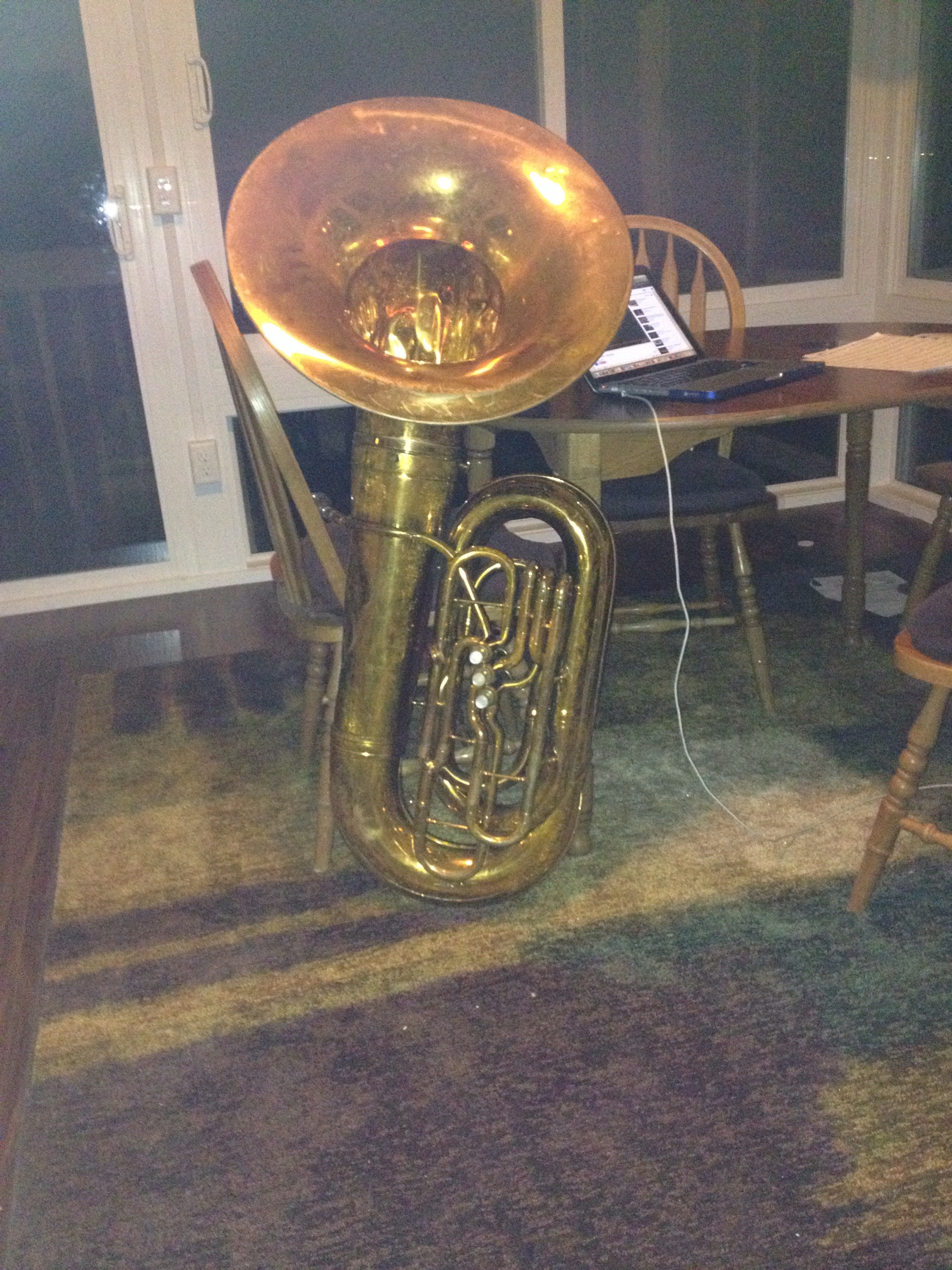 Anyway, she comes to me during a break, and asks me if I’d be willing to pick up my tuba, after 26 years, and play with the middle school during the Christmas concert.