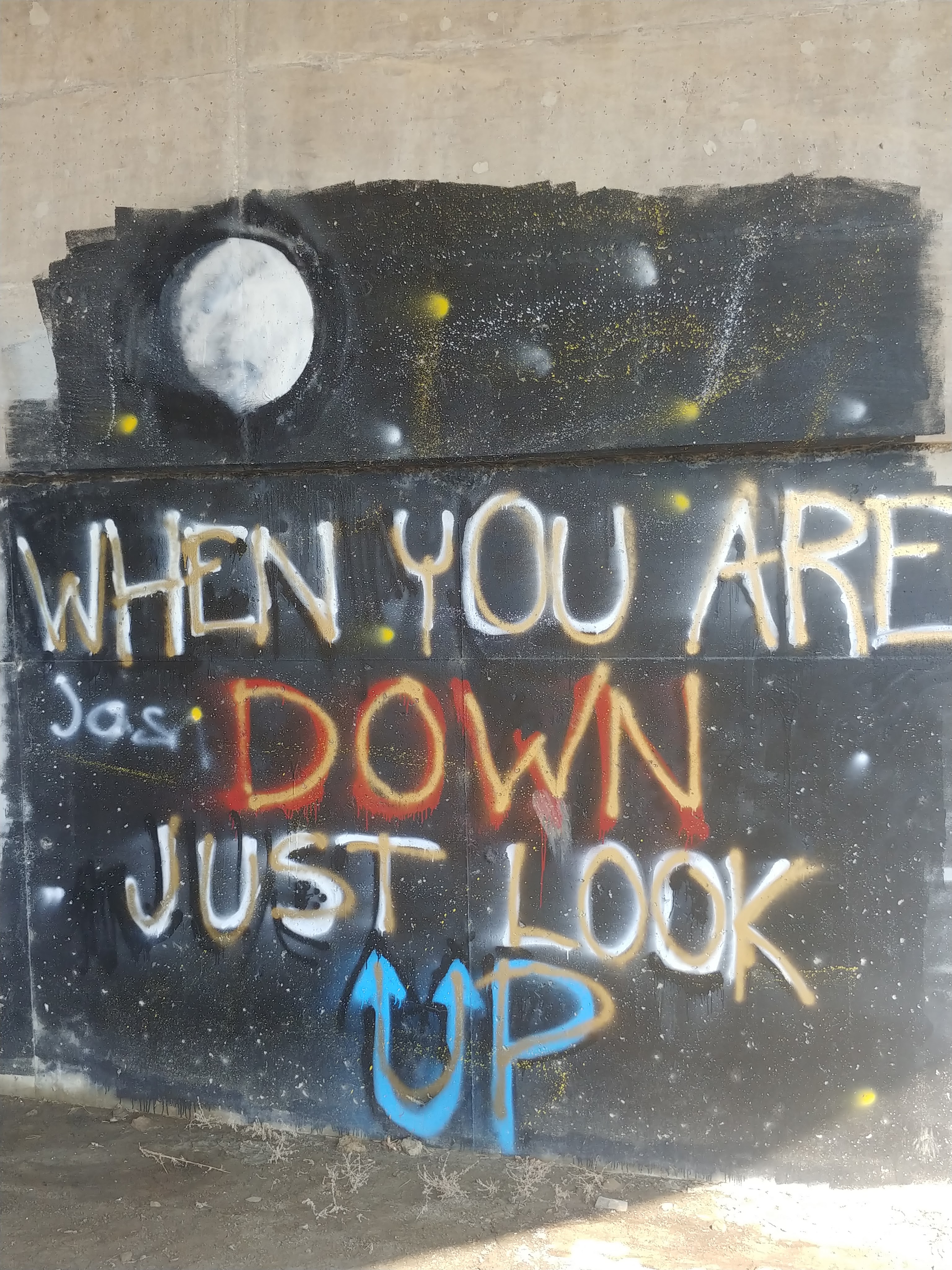 This was under a bridge and I had to stop to snap a picture. It wasn’t the art work, though the moon is very well done. It was the message. First, you don’t normally see the positive message in graffiti, let alone graffiti under a bridge!